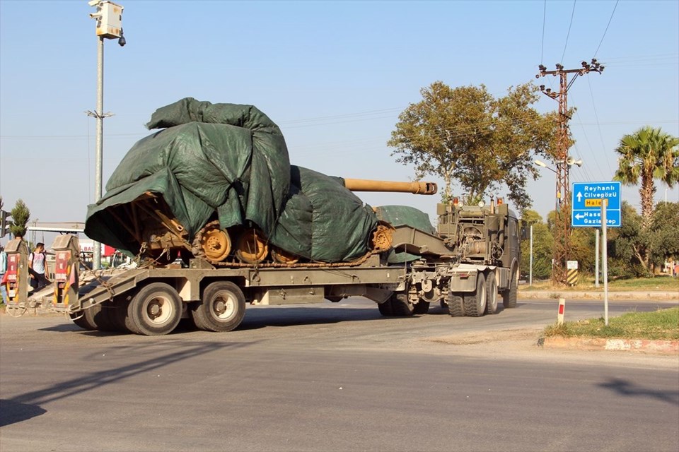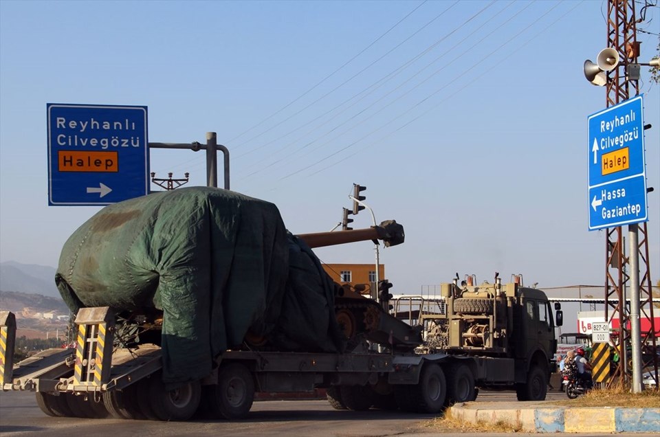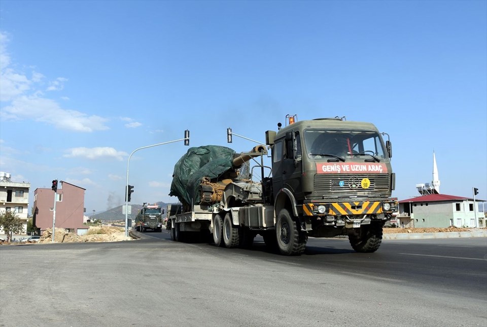 Türkiye’nin farklı illerinden gönderilen obüs, tank, zırhlı personel taşıyıcılar ve askeri araçlar, Hatay’ın Reyhanlı ilçesine ulaştı.