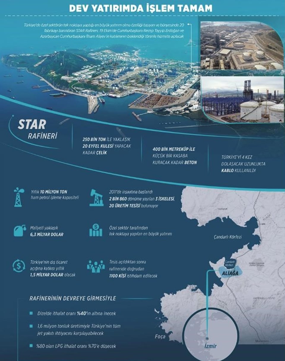 – Türkiye’de özel sektörün tek noktaya yaptığı en büyük yatırımı olan STAR Rafinerisi, Avrupa, Orta Doğu ve Kuzey Afrika bölgesinde son yıllarda gerçekleştirilen en büyük petrol operasyonları arasında yer alıyor.