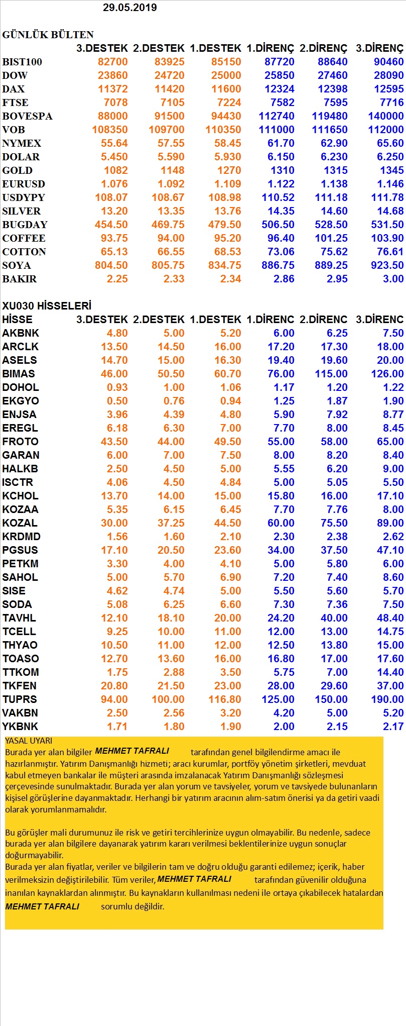 ENDEKSLERİN, HİSSELERİN, KURLARIN, EMTİALARIN ELLİOT ANALİZİ… May 28, 2019 | Genel | 0 | DESTEKDIRENCLER