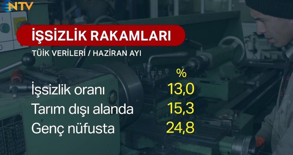 Türkiye İstatistik Kurumu verilerine göre, haziran ayında işsizlik oranı 2,8 puanlık artışla yüzde 13 olarak gerçekleşti. Bir önceki yılın aynı ayına göre 938 bin kişi artan işsiz sayısı toplamda 4 milyon 253 bin kişiye ulaştı.