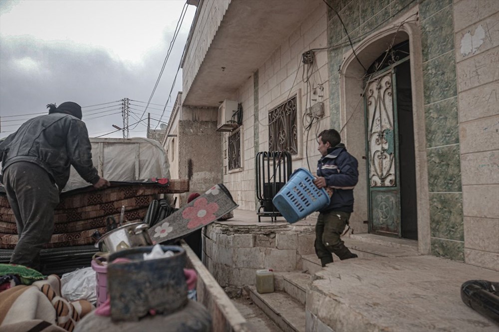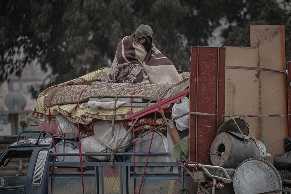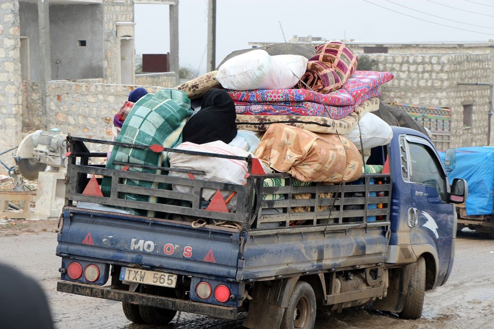 Aileleri ile birlikte yanlarına alabildikleri eşyaları araçlarına yükleyerek yola çıkan Suriyeliler, kötü hava koşullarına rağmen araç içerisine sığmayan çocuklarını eşyaların üzerinde taşıdı.