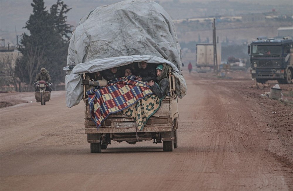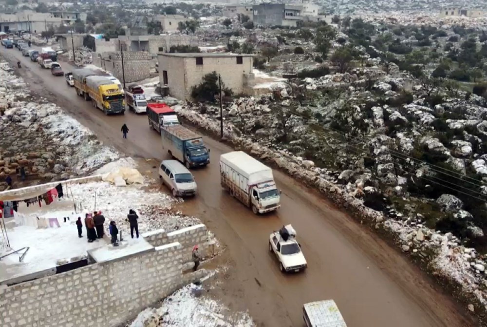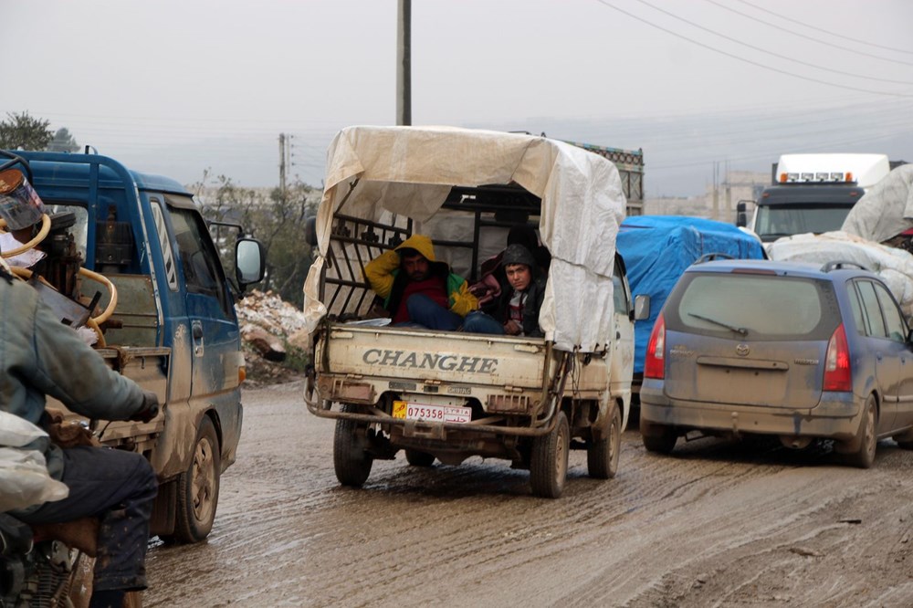 Suriye’nin İdlib kentinden Rusya ve Esed rejiminin bombardımanından kaçan sivil vatandaşlar, Türkiye sınırına doğru göç ederek Basuta-Afrin yolunda uzun kuyruklar oluşturdu.