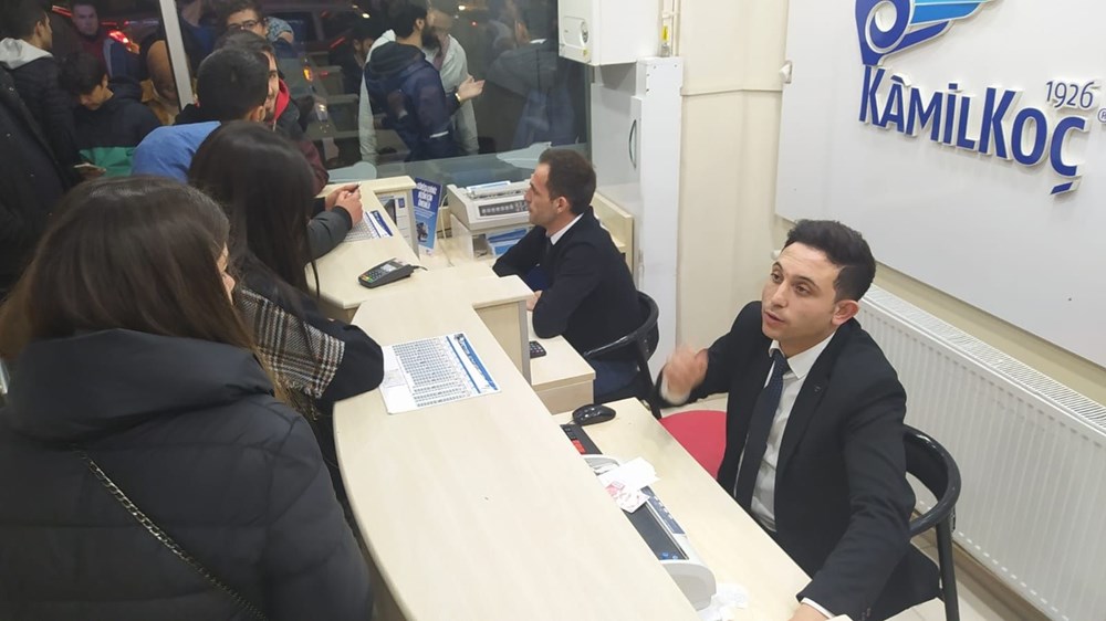 Bilet almak için uzun kuyruklar oluşturan öğrencilerin yoğun talebine otobüs firmaları da bilet yetiştirmekte güçlük çekti.