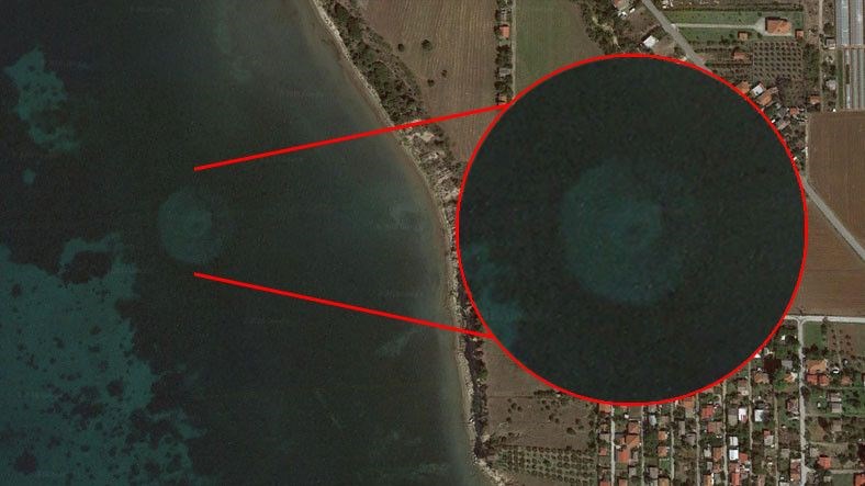 • Yunanistan’ın Selanik kentine bağlı olan Michanina bölgesi sahillerinde, Google Earth uydularına yansımış tuhaf bir cisim keşfedildi.