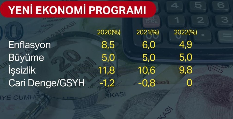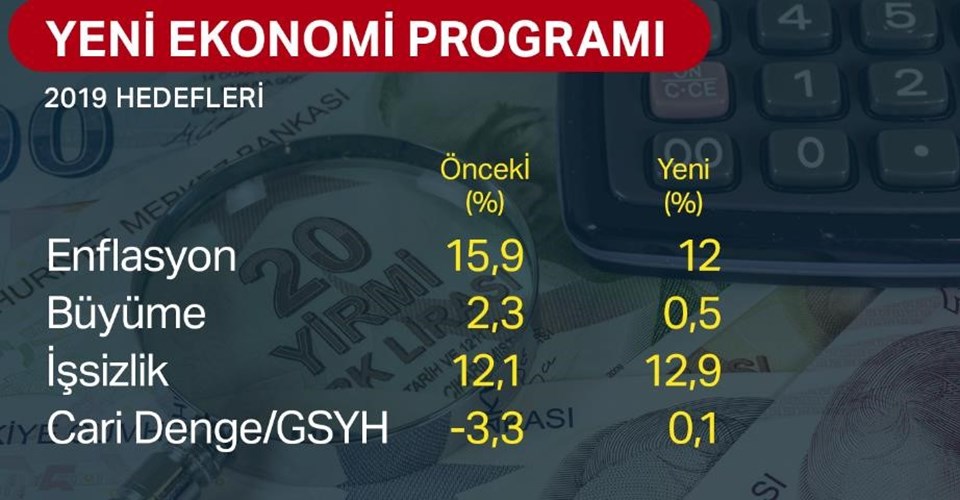 YENİ EKONOMİ PROGRAMI’NDA ENFLASYON HEDEFLERİ, 2019 İÇİN YÜZDE 12, 2020 İÇİN YÜZDE 8,5, 2021 İÇİN YÜZDE 6, 2022 İÇİN YÜZDE 4,9 OLDU